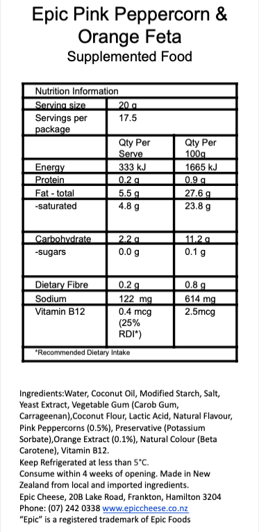 Bright, bold, and bursting with flavour, this Pink Peppercorn & Orange Plant-Based Feta puts a zesty twist on a classic. The citrusy notes of orange pair perfectly with the gentle heat of pink peppercorns, creating a vibrant, tangy, and slightly spicy flavour experience.